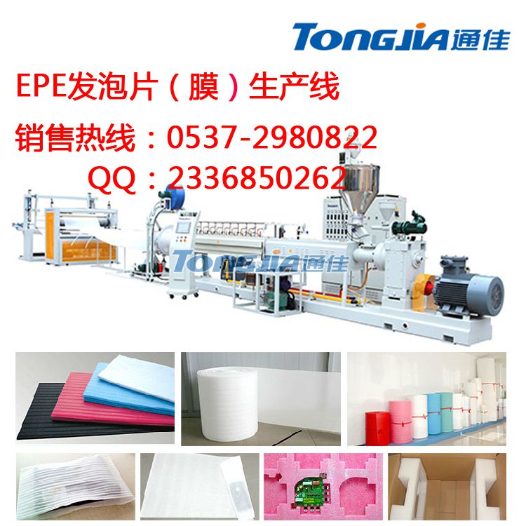 epe發(fā)泡膜(片),又稱珍珠棉,是當(dāng)今國際市場上流行的一種新型軟包裝材料,具有防潮、防震、隔音、保溫、可塑性能佳等諸多優(yōu)點(diǎn),是傳統(tǒng)包裝材料的理想替代品。這種產(chǎn)品被廣泛應(yīng)用于各種電器、電子(半導(dǎo)體、電視機(jī)、電冰 箱、電腦、手機(jī)等)、精密儀器、高檔家俱、皮鞋及各種易碎品(各種燈飾、高檔瓷器等)的包裝。工業(yè)生產(chǎn)的隔音隔熱材料,農(nóng)用保溫材料,體育用品的防護(hù)墊,家庭、賓館的地板裝飾等。該產(chǎn)品通過復(fù)合、增厚等再次加工,還可廣泛應(yīng)用于箱包襯墊,木地板防潮層、冷庫保溫層、運(yùn)動軟墊,汽車坐墊【epe珍珠棉設(shè)備廠家—山東通佳機(jī)械