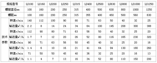 ls300螺旋輸送機技術(shù)參數(shù)表: