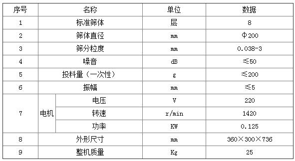 φ200標(biāo)準(zhǔn)檢驗(yàn)篩技術(shù)參數(shù):