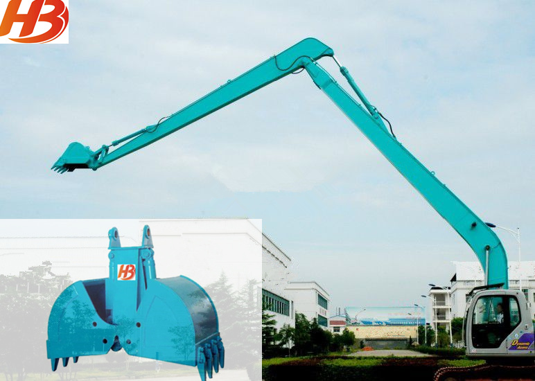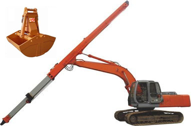 2.3)20-25噸位挖掘機加長臂:可加長到18米,其配置為:挖斗一個、鏟斗油缸一支、銷軸六支、高壓軟管四條、黃油管三條、連桿總成一套、已配好高壓軟管挖掘機加長大臂(10米)與挖掘機加長小臂(8米)各一組、配重一至三噸;