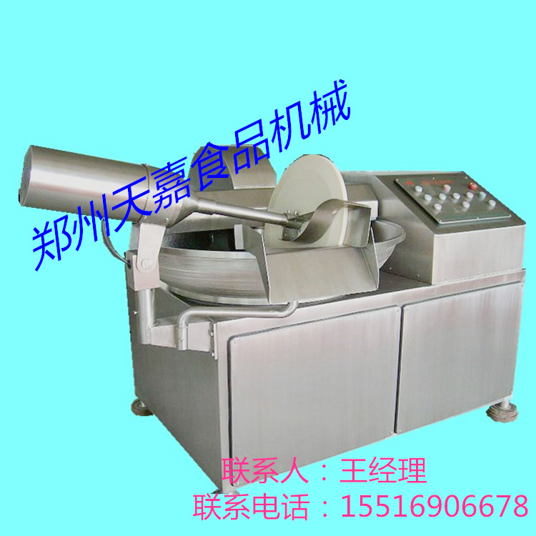 天嘉斬拌機(jī)是利用斬刀高速旋轉(zhuǎn)的斬切作用,將肉斬成肉餡或肉泥狀,還可以將肉、輔料、水一起攪拌成均勻的乳化物。我司生產(chǎn)的斬拌機(jī)刀速、鍋速、斬刀與斬鍋的間隙達(dá)到了最佳的組合,使斬切產(chǎn)品細(xì)度好、升溫小、斬拌時(shí)間短,特別是由于乳化處理,使腸類產(chǎn)品的細(xì)密度與彈性均大大增強(qiáng),最大程度的提高了肉制品乳化效果、彈性及細(xì)膩度。