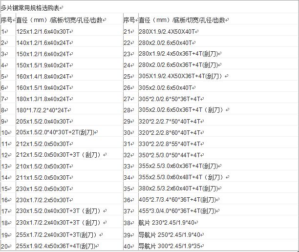 9.預(yù)轉(zhuǎn)時間:更換合金鋸片后,使用前需預(yù)轉(zhuǎn)一分鐘,讓鋸臺進(jìn)入工作狀態(tài)時,才能進(jìn)行切割。 規(guī)格說明:內(nèi)徑/鍵槽/齒厚/齒數(shù),可定制