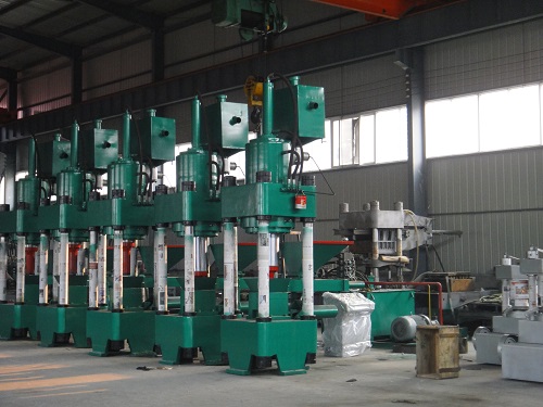 “鑫源”牌全自動液壓金屬屑壓塊機能將各種金屬屑(鐵屑、銅屑、鋁屑、鈦等)、粉 粒狀金屬粉 (鐵粉 、鋁粉 、銅粉 、鉛粉 等)、冶煉添加劑 、海綿鐵等在不加入任何粘合劑 的情況下壓制成高密度圓柱形餅塊(重量2-8公斤),餅塊密度可達5t/m3以上(原材料不同,壓出餅塊密度不重量也不相同),壓制成的餅塊可直接投爐使用。鑄鐵牌號可達ht200-250,每噸鑄件可節(jié)約成本700元左右。