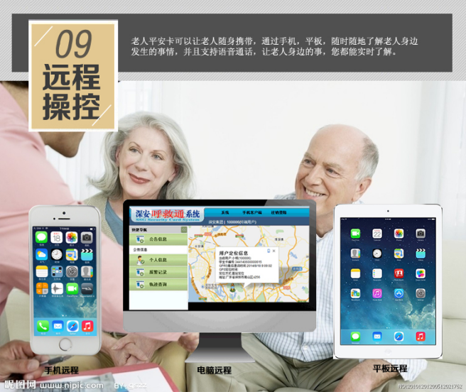 老人gps定位呼叫器是物聯(lián)網(wǎng)項(xiàng)目在居家養(yǎng)老項(xiàng)目建設(shè)中的落地產(chǎn)品,該居家養(yǎng)老系統(tǒng)集成gps(全球衛(wèi)_星_定位)、無(wú)線(xiàn)通訊等多項(xiàng)先進(jìn)技術(shù),可對(duì)老人這一特定群體進(jìn)行海量信息采集,通過(guò)互聯(lián)網(wǎng)對(duì)數(shù)據(jù)進(jìn)行分析,然后通過(guò)終端及后臺(tái)實(shí)現(xiàn)有效的互動(dòng)交流,即可實(shí)現(xiàn)老人身份識(shí)別、老人管理、緊急求助、gps定位服務(wù)等一系列實(shí)際應(yīng)用功能。老人一旦使用了深安 老人gps定位呼叫器,兒女和管理服務(wù)中心就能時(shí)時(shí)定位他們的位置,人身安 全及信息安 全都有了保障,兒女可與管理服務(wù)中心聯(lián)合起來(lái)掌控老人的動(dòng)向,雙方都能放心,且再也不必把大量的時(shí)間和精力花在老人的日常管理上。