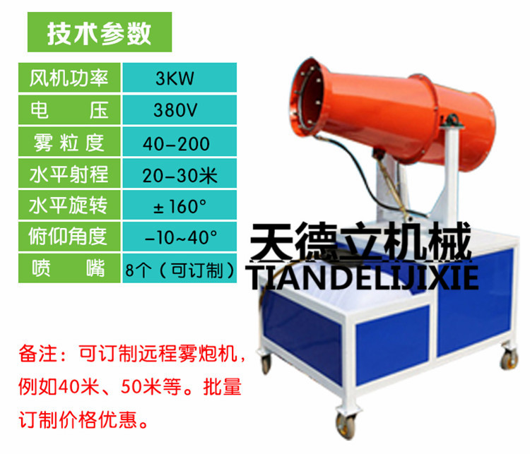 成粉 塵大小相當(dāng)?shù)乃,在風(fēng)機(jī)作用下將水霧精準(zhǔn)拋射至目標(biāo),對(duì)揚(yáng)塵具有很好的控