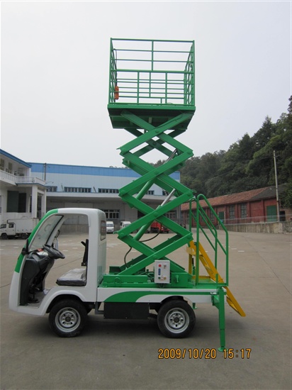 電瓶車載式升降臺(tái):電瓶車載式液壓升降臺(tái)套是由升降臺(tái)和電瓶車配改裝而成的高空作業(yè) 專用設(shè)備。它利用電瓶車原有直流動(dòng)力,勿須外接電源,即可實(shí)現(xiàn)升降臺(tái)的升降和整機(jī)的移動(dòng)。它移動(dòng)方便,作業(yè)流動(dòng)范圍廣,適用于作業(yè)范圍大,流動(dòng)性強(qiáng)的各行高空作業(yè)。