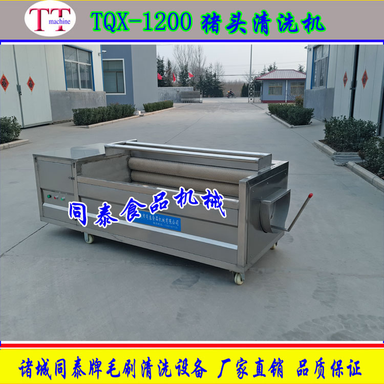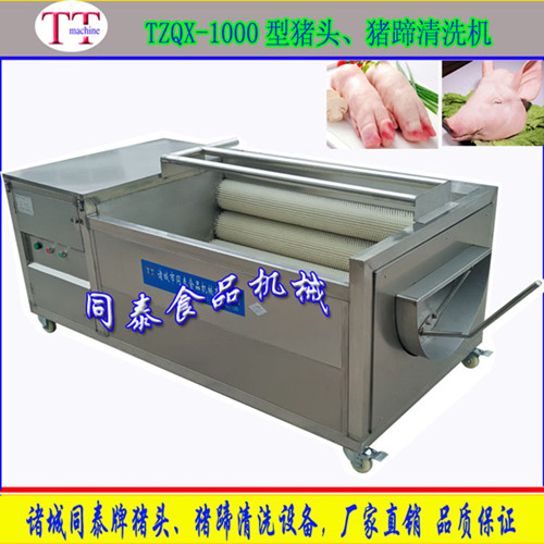 同泰牌洗豬頭機,豬頭清洗機,豬蹄清洗機專為經(jīng)營豬頭、豬蹄,豬耳,豬肘的批發(fā)客戶設(shè)計制造你,節(jié)約勞動成本,清洗速度快.干凈,清洗量可達750kg/h.1.高級尼龍刷絲,精工毛刷,耐磨不倒毛。2.整機加厚鋼板制作,堅固耐用,滾輪四點支撐,移動方便。3.雙排工業(yè)鏈條驅(qū)動,耐磨損,承載力更大,安 全可靠。4.黃油管供油,軸承加油更方便。5.380/220v低噪電機,對電力要求不高,適合各種場地。