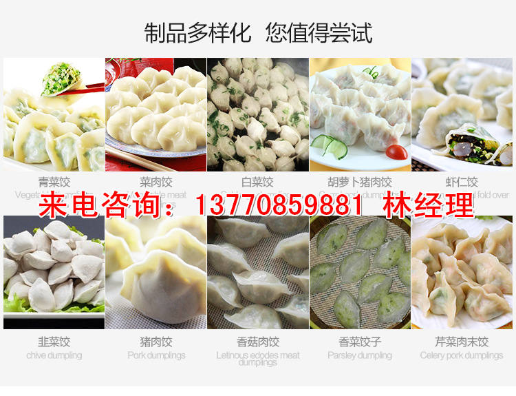 ◆本機可以生產(chǎn)速凍餃子等,能生產(chǎn)各種肉餡、肉菜混合餡、全菜餡及其它種餡的餃子。適用于餃子館、食品生產(chǎn)廠家、賓館、飯店、餐廳、團體食堂、學校、部隊。