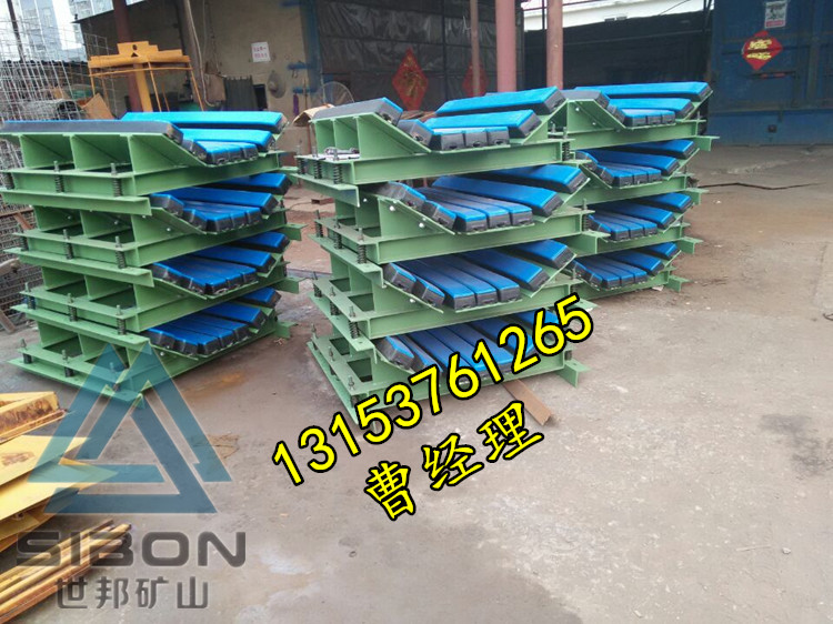 緩沖床是世邦礦山根據(jù)市場需求潛心研制的一種新型輸送帶緩沖裝置,是由一組超高分子聚乙烯耐磨緩沖條、抗沖擊高強度支架并通過緊固件鏈接構(gòu)成。其整體結(jié)構(gòu)對皮帶形成全面的保護,完全杜 絕落料口皮帶撕裂的隱患,高彈性的緩沖條緩沖層使得整體緩沖抗沖擊力更強。本裝置結(jié)構(gòu)簡單免維護,使用壽命長,特別適用于長距離,高運速、高強度,工礦惡劣的帶式輸送機。