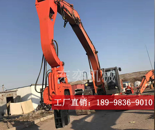 振動(dòng)式沉拔樁錘是利用其高頻振動(dòng),以高加速度振動(dòng)樁身,將機(jī)械產(chǎn)生的垂直振動(dòng)傳給樁體,導(dǎo)致樁周圍的土體結(jié)構(gòu)因振動(dòng)發(fā)生變化,強(qiáng)度降低。樁身周圍土體液化,減少樁側(cè)與土體的摩擦阻力,然后以挖機(jī)下壓力、振動(dòng)沉拔錘與樁身自重將樁沉入土中。拔樁時(shí),在一邊振動(dòng)的情況下,以挖機(jī)上提力將樁拔起。打樁機(jī)械所需要的激振力要根據(jù)場(chǎng)地土層、土質(zhì)、含水量及樁的種類、構(gòu)造而綜合確定。振動(dòng)法沉樁效率較其它工法為高,主要適用于鋼板樁、鋼管樁及長(zhǎng)8m以內(nèi)的細(xì)長(zhǎng)混凝土預(yù)制樁。這種沉樁法最適用于砂土中作業(yè),在黏土中效果較差,必須選用較大功率的機(jī)型。