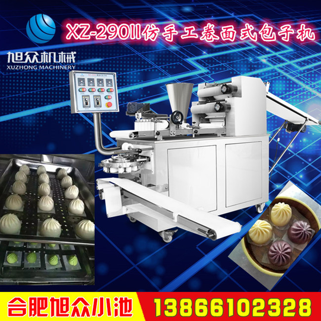 旭眾xz-290ii型卷面式包子機(jī)是一款專業(yè)仿手工制作各種包子及類似包餡類食品的高效實(shí)用型機(jī)械設(shè)備。體積小重量輕,外殼及接觸食品不符均由不銹鋼制造,外觀精美耐用。采用三變頻無極變速調(diào)控,面餡調(diào)節(jié)自如,產(chǎn)品一次成型,大小統(tǒng)一,表面光滑,且有花紋整形,使產(chǎn)品花紋整齊,外形美觀、口感一流;餡料多少,產(chǎn)量的調(diào)節(jié)操作簡(jiǎn)單方便一步到位。廣泛適用于各種工廠,學(xué)校,機(jī)關(guān)單位食堂,食品加工廠,商鋪,餐飲連鎖店等。產(chǎn)品符合國(guó)家《sb140-83》頒布標(biāo)準(zhǔn)及國(guó)家有關(guān)食品機(jī)械衛(wèi)生要求。系由我公司自行研發(fā)設(shè)計(jì),精工制造的一款多功能使用新型食品機(jī)械。為相關(guān)企業(yè)及個(gè)人提供了高速,集約,標(biāo)準(zhǔn)化生產(chǎn)包餡類食品的理想平臺(tái)。