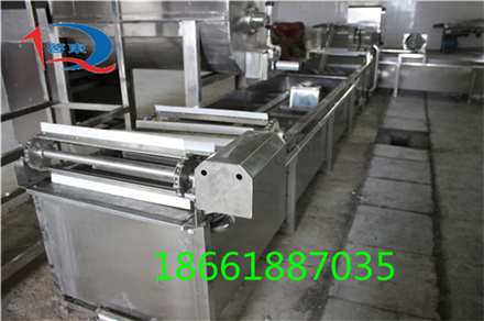 工作時由于漩渦氣泵的存在,在水池中產生氣泡,讓池水翻滾,達到產品翻滾的目的。蔬菜清洗設備上端配有高壓噴淋,產品在池中翻滾,再有高壓水沖擊,達到清洗海帶粘 膜細沙的作用,雜質漂浮表面,通過溢水口溢出,細沙經過水循環(huán)過濾,在雜質箱沉淀。