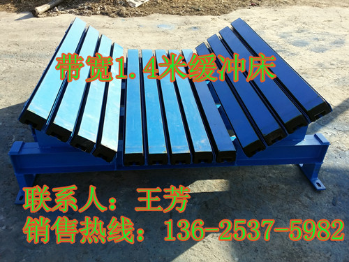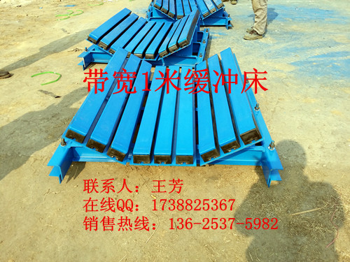 緩沖床應用于帶式輸送機受料點部位,是緩沖托輥的最佳替代品,其主要作用是支撐和保護輸送帶,可有效的避免物料下落時對輸送帶的沖擊,防止輸送帶的跑偏。