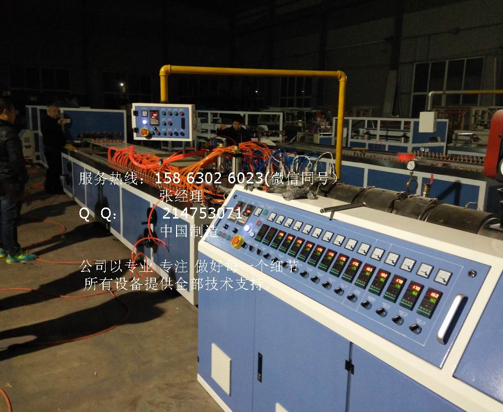 生產(chǎn)線(xiàn)組成:65雙螺桿擠出機(jī)→→擠膠機(jī)→→真空定型臺(tái)→→牽引機(jī)→→切割機(jī)→→接料架