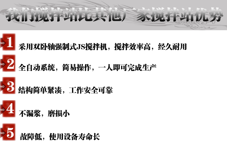 hzs35混凝土攪拌站主機采用雙臥軸強制式js7500攪拌機,另外配備三斗/四斗一字型,水泥,外加劑 計量,攪拌站微機控制室。