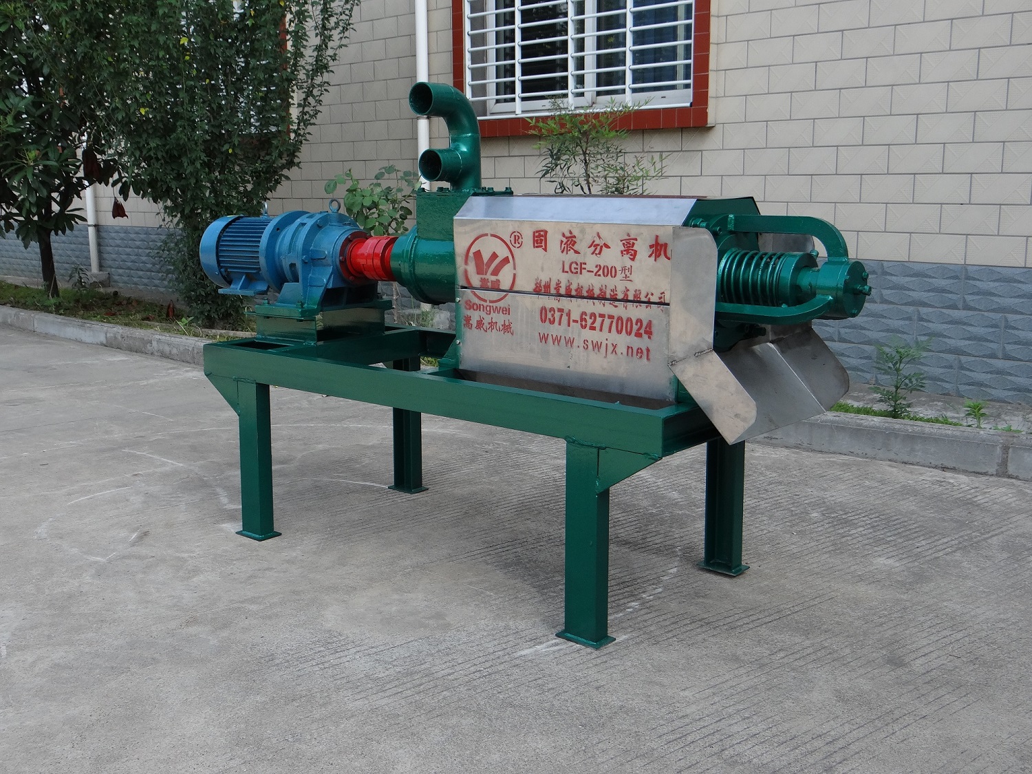 該機采用螺旋擠壓的物理原理,可自由掌握出料的速度與含水量,使物料中水分擠出網(wǎng)篩,流出排水管,快速完成固流液分離,效率高、效果好。