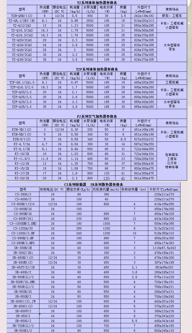 我公司專業(yè)生產(chǎn)各型客車用制熱空調(diào)機(jī)(該系列產(chǎn)品又稱作:燃油加熱器);功率型號(hào)范圍從5kw到40kw不等;