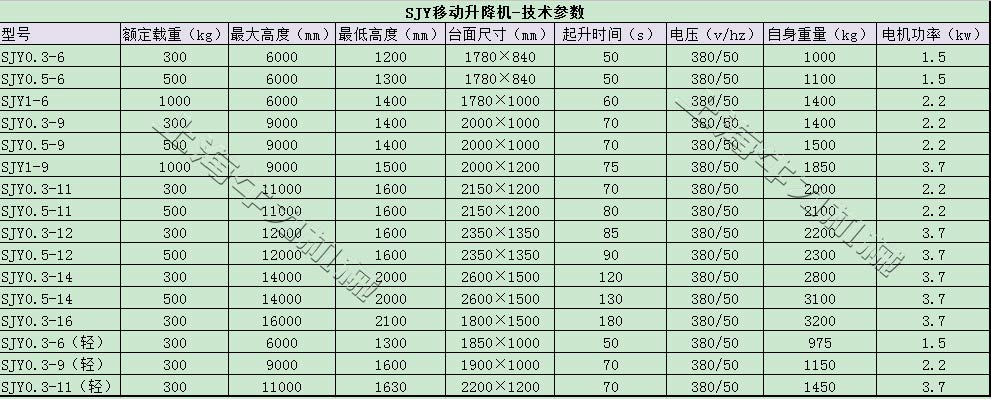 升降高度:3、6、9、11、12、14、16米;