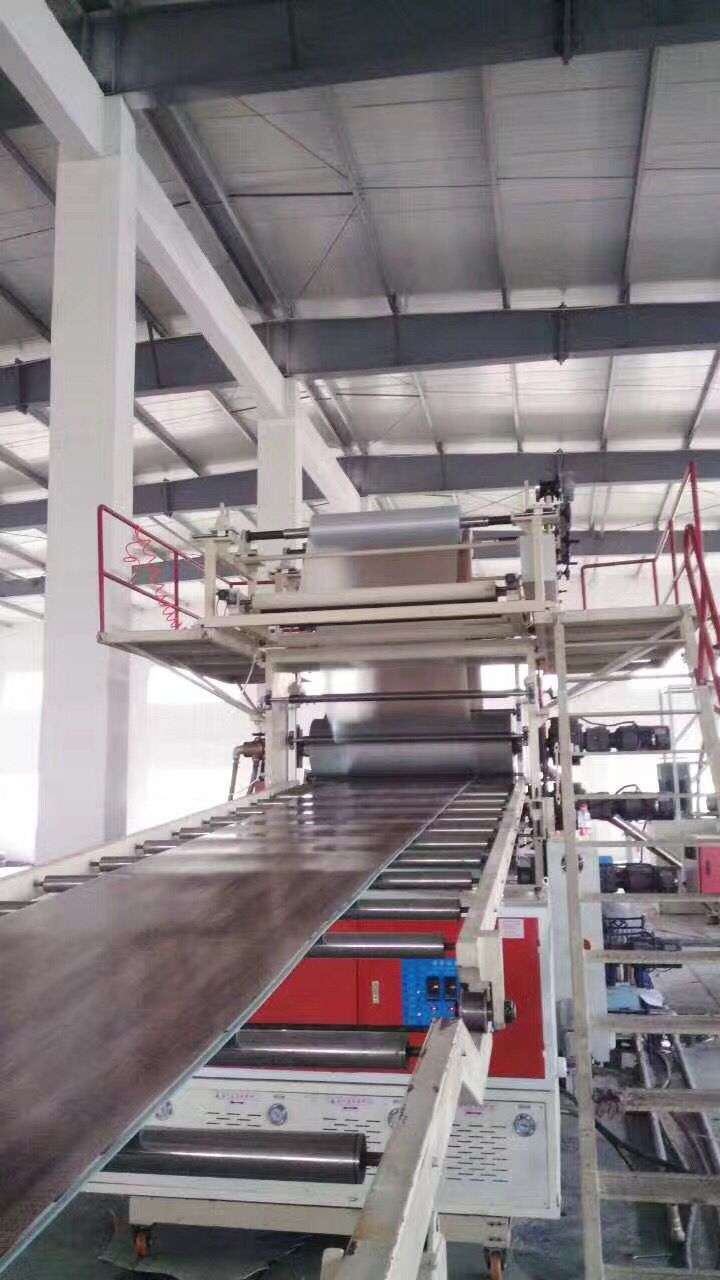 pvc石塑地板生產(chǎn)線:可直接在生產(chǎn)線上做出木紋浮雕圖案,表面不需要增加另外機(jī)械設(shè)備,配有機(jī)械手減
