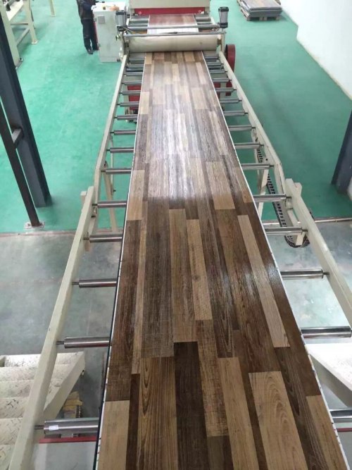 pvc石塑地板生產(chǎn)線:可直接在生產(chǎn)線上做出木紋浮雕圖案,表面不需要增加另外機械設(shè)備,配有機械手減