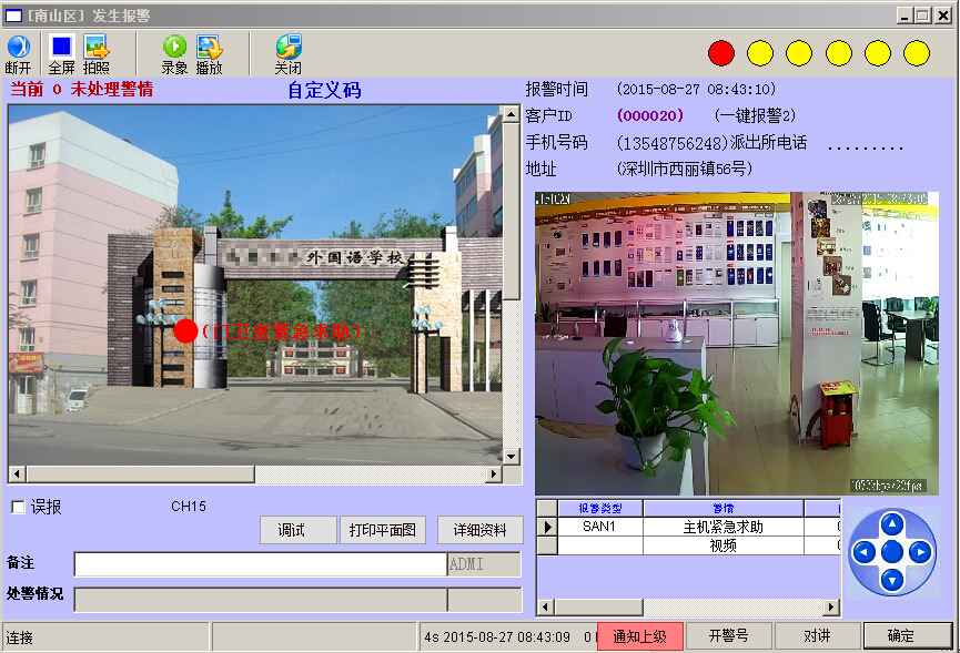 2.管理中心工作人員按下對講鍵,可以與報警者視頻通話,做到雙工對講,進一步了解警情情況;