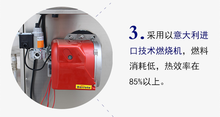 5、節(jié)能:采用以意大利進(jìn)口技術(shù)燃燒機(jī),燃料消耗低,熱效率在85%以上。