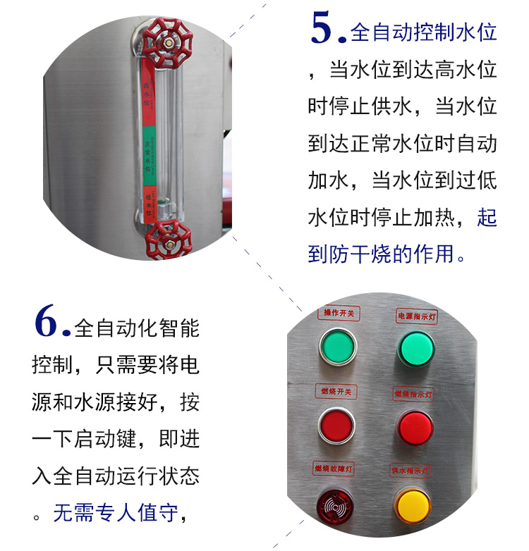 方便:全自動燃燒和水位控制,燃燒機(jī)故障自動檢測;