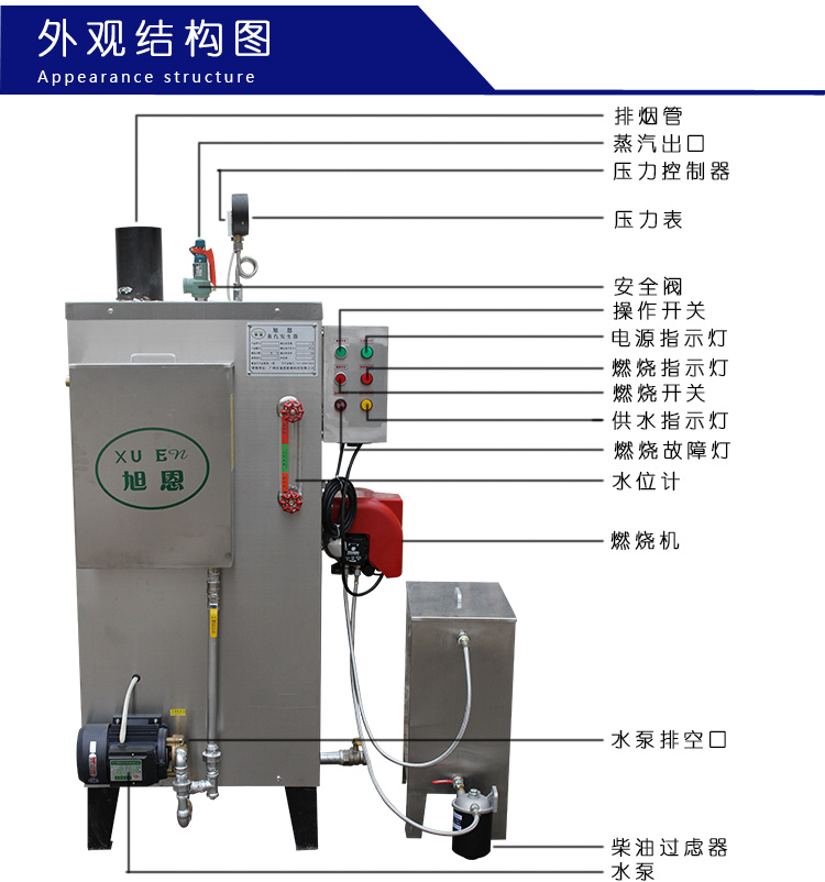 本系列產(chǎn)品設(shè)計制造、檢驗(yàn)嚴(yán)格按照國家標(biāo)準(zhǔn),本體采用優(yōu)質(zhì)鍋爐鋼制成,給水泵采用壓力大、噪聲低的高溫高壓渦流泵。爐內(nèi)設(shè)有水位控制,加熱加水自動轉(zhuǎn)換。本系列產(chǎn)品體積小、熱效率高、安 裝、移動使用方便快捷。