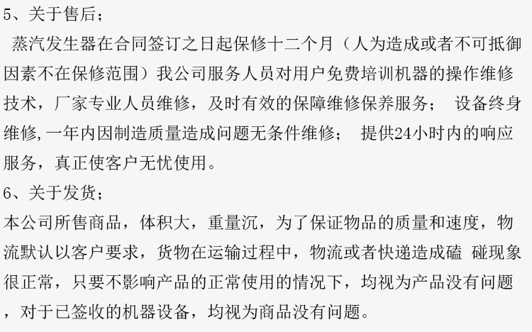 6)每次關機,要及時放掉鍋爐內膽里的水合蒸汽,關掉總電源,否則氣體在機器里面冷卻后會變成假的氣體,第2天開機到時候氣壓會很快上來,不過閥門打開后出來的都是水。