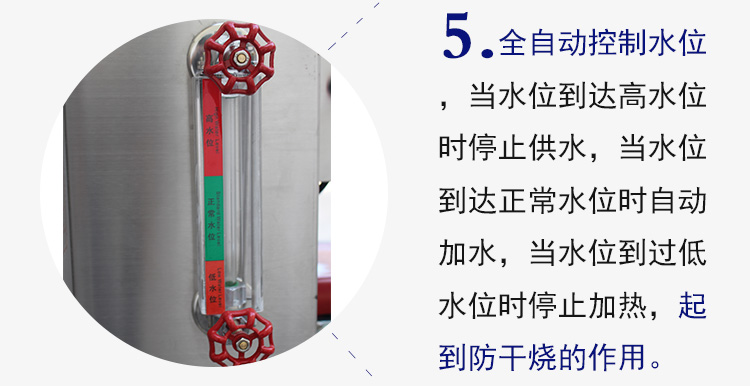 鍋爐輻射受熱面為全波紋爐膽,對(duì)流受熱面采用螺紋煙管,受熱面大,鍋爐熱效率高于國(guó)家規(guī)定。