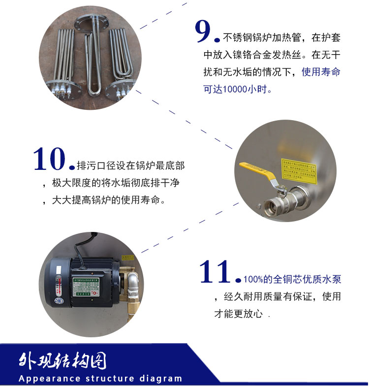 為合理有效的使用電能,特別將加熱功率分為數(shù)段,并由控制器自動(dòng)循環(huán)投入(切斷)用戶根據(jù)實(shí)際需要確定好加熱功率后,只需合上相應(yīng)漏電斷路器(或按下相應(yīng)的投切開關(guān))即可。加熱管的分段循環(huán)投切,降低了鍋爐在運(yùn)行中對(duì)電網(wǎng)的沖擊。