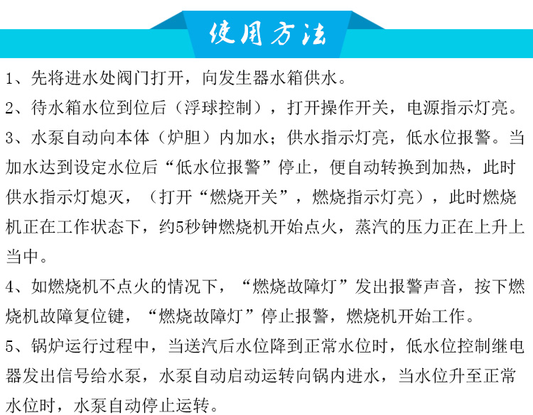 配備了安 全閥、壓力控制器、水位控制保護(hù)器等多重連鎖保護(hù)裝置,絕對(duì)安 全可靠,采用鰭片式水管貫流式爐膽結(jié)構(gòu),有效地補(bǔ)償熱膨脹,防止熱脹冷縮應(yīng)力的產(chǎn)生,使鍋爐結(jié)構(gòu)安 全可靠,延長了使用壽命。