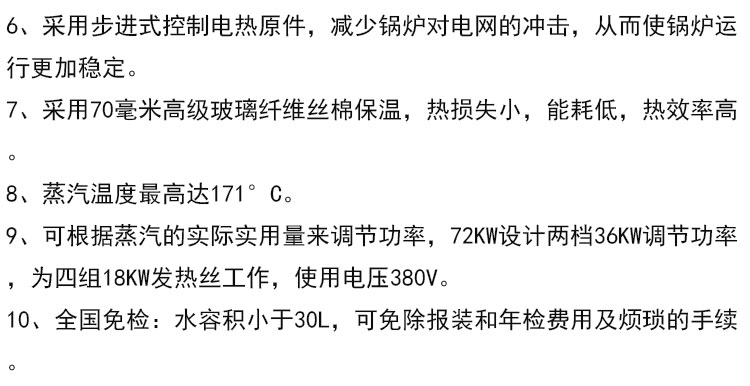 6、電鍋爐,是將電能直接轉(zhuǎn)化為熱能,升溫快,熱轉(zhuǎn)換效率接近100%。與傳統(tǒng)燃煤方式相比節(jié)能效果非常明顯;