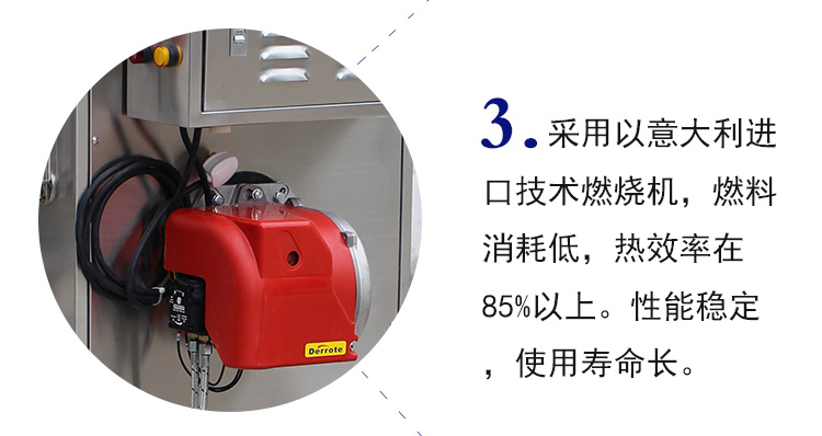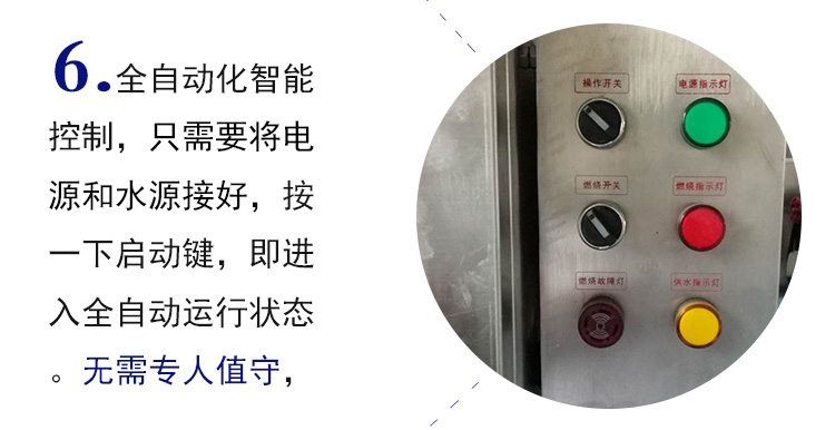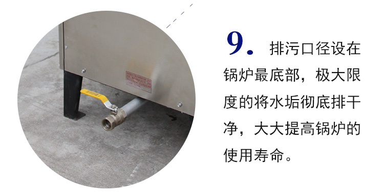 3.內(nèi)膽儲(chǔ)汽空間大,蒸汽純無(wú)水份,采用三極高,中,低探針控制水位。全自動(dòng)加水加熱,防止無(wú)水加熱現(xiàn)象,即安 全又延長(zhǎng)加熱管及鍋爐使用壽命