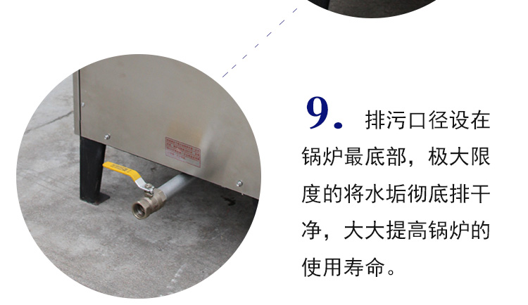 6)每次關(guān)機(jī),要及時(shí)放掉鍋爐內(nèi)膽里的水合蒸汽,關(guān)掉總電源,否則氣體在機(jī)器里面冷卻后會(huì)變成假的氣體,第2天開機(jī)到時(shí)候氣壓會(huì)很快上來,不過閥門打開后出來的都是水。