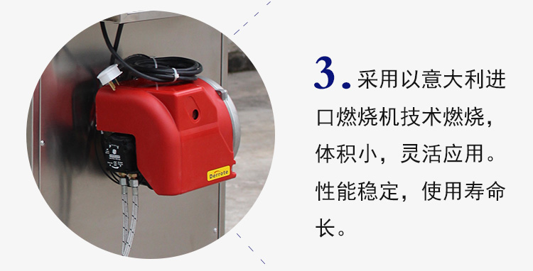 2節(jié)能:采用歐洲進(jìn)口燃燒機(jī),燃料消耗低,熱效率在95%以上。