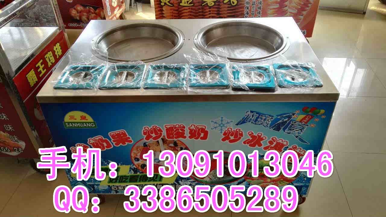 3、三皇炒奶果機制冷速度快:我們公司的炒冰 機功率大,制冷速度快。省電;采用大1.5p大功率壓縮機,而且改變了以前圈狀結冰 的特點,隨著制作工藝的提高,目前可以達到整鍋片狀結冰 的狀態(tài),極大的縮短了炒冰 機時間。結冰 速度保持在15秒左右。而低端市場的炒冰 機,一般用1p左右的壓縮機, 其制冷速度很不理想,當客戶排隊等待時,制作的速度就非常突出了。操作者會感到操作非常吃力。