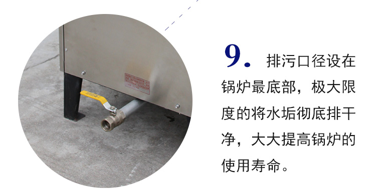3.不銹鋼蒸汽發(fā)生器的所有內(nèi)部管路和控制系統(tǒng)在出廠前就已連接完畢。一步到位的傻瓜控制系統(tǒng),您只要按一個按鈕,鍋爐即可進(jìn)行全自動運行狀態(tài),極大的方便了您的使用!