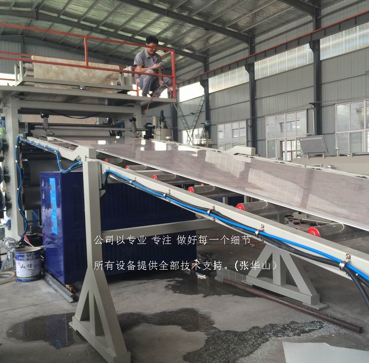 主 機(jī)螺筒采用鑄鋁加熱器加溫,風(fēng)冷卻,精密電控儀表控制溫度。精密的定型壓光裝置,通過其良好的調(diào)整功能使板材定型優(yōu)良。切割部分采用定長切割裝置,保證板 材長度精確。pvc仿大理石板材擠出設(shè)備有異應(yīng)用前景十分廣闊,uvp仿大理石板材,最突出的優(yōu)勢(shì)就是高仿大理石紋,色澤和反光度等與大理石基本一致,用 于內(nèi)墻裝飾,可達(dá)到與石材一樣的裝飾風(fēng)格;在大廳內(nèi)墻的裝飾更顯質(zhì)樸、堅(jiān)韌。uvp仿大理石紋板,采用的是轉(zhuǎn)印技術(shù)仿制石紋,石紋種類繁多,色彩豐富,可 以給內(nèi)墻帶來不同的裝飾選擇。
