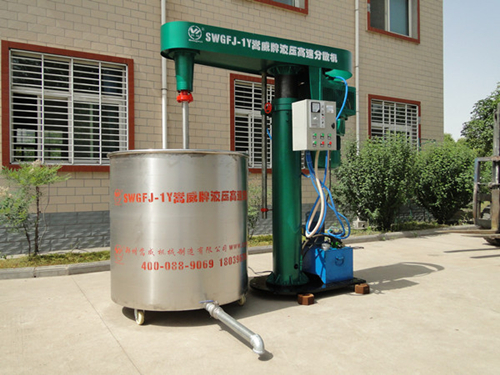 嵩威牌液壓升降分散機(jī)(0.5噸、1噸),主要是利用安 裝在攪拌主軸上的鋸齒狀圓盤形分散盤在容器內(nèi)高速旋轉(zhuǎn)將物料分散,完成物料的固液分散、濕潤、解聚、穩(wěn)定等過程。適用于涂料、染料、油墨、顏料、化妝品、樹脂、膠粘劑 、乳液、醫(yī) 藥、石油等領(lǐng)域的液體及液—粉 相物料進(jìn)行高速的攪拌、溶解和分散-嵩威機(jī)械