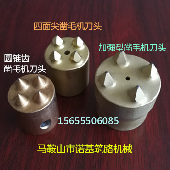 鑿毛機(jī)刀頭一般都是有刀體、四顆合金焊接而成的!合金齒有圓錐尖齒形的,也有四方尖齒形的!采用優(yōu)質(zhì)的粗顆粒鎢鈷合金粉 末材料壓制而成!