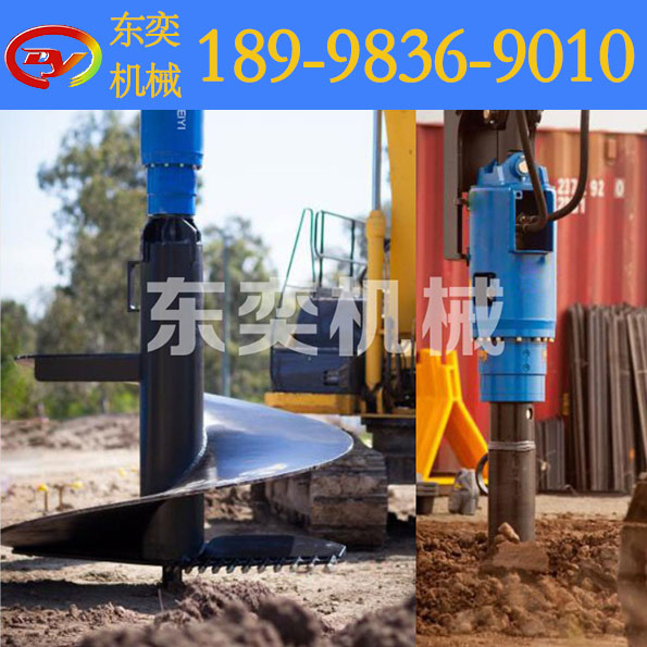 螺旋鉆機以鏟車、挖掘機為動力源,配以液壓系統(tǒng)來實現(xiàn)鉆孔挖坑的機械設備。該設備一般由托架、動力頭、鉆桿三部分組成。適用于電線桿坑鉆孔、植樹挖坑、太陽能光伏發(fā)電中支架安 裝時的鉆孔工程等,鉆孔直徑徑范圍為:200mm-1000mm。同時該機也被稱作為打樁機,在農(nóng)村房屋改造工程工,該機可以用于樁基的鉆孔。該機充分實現(xiàn)了一機多用的功能,大大提高工作效率,移動方便,適用于多種地形。螺旋鉆機工作原理:由動力頭帶動螺旋葉片鉆桿、鉆頭旋轉(zhuǎn),在旋轉(zhuǎn)的過程中,將土層的一部分物料延著螺旋葉片運送上升到地面,另一部分土層物料夾在葉片之間,在鉆夠深度后,由挖掘機將鉆具提升,物料也被提升上來。改變螺旋鉆具的直徑即可鉆出不同孔徑的樁孔。
