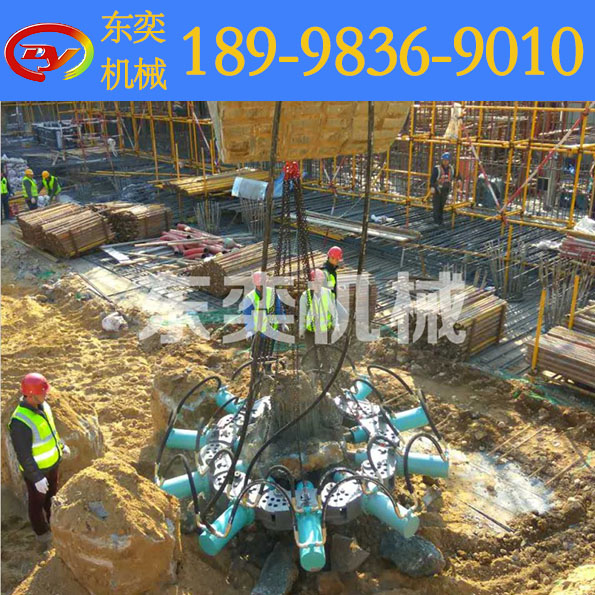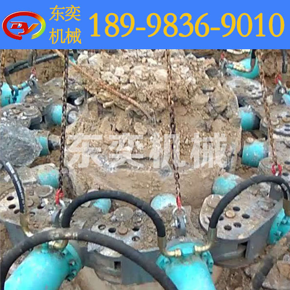 液壓破樁機主要由動力源和工作裝置兩部分組成,破樁機通過動力源給破樁機多個油缸提供壓力,油缸直接驅動釬桿,同時擠壓樁身,使樁頭截除。工作裝置由多個相同型號的液壓油缸組合成不同直徑的破樁機,滿足各種直徑的樁型破樁頭的要求,這種油缸的活塞采用合金鋼加工而成,能滿足各種標號的混泥土的破碎要求。動力源可采用固定的泵站或是其它可移動的工程機械設備,一般情況下,在高層建筑樁基礎施工中采用泵站的比較多,這種組合方式的設備總體投資比較小,但是移動不是很方便,適合用于群樁的樁頭破除中; 在橋梁施工中采用移動方便的挖掘機作為動力源的比較多,將挖掘機的挖斗取下,在挖斗與大臂連接軸處懸掛破樁機的吊裝鏈,將這兩種設備機械組合在一起,然后再將挖掘機的任何一根油缸的液壓油路通過平衡閥連接到破樁機的油缸油路上,用以驅動破樁機的油缸組工作。這種組合的破樁機移動方便,作業(yè)面比較廣,適用于樁不集中,作業(yè)戰(zhàn)線長的施工項目,但是投資相對比較大。