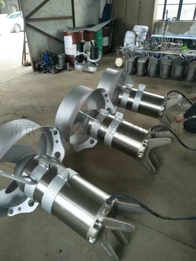 南京蘭江水處理設(shè)備有限公司專業(yè)生產(chǎn)全不銹鋼304的qjb15/12-620/3-480的潛水?dāng)嚢铏C(jī),機(jī)殼采用了噴砂處理,qjb15/12-620/3-480的潛水?dāng)嚢铏C(jī)出廠是不含導(dǎo)流罩的,因?yàn)榧訉?dǎo)流罩容易損壞,如有需要請(qǐng)注明!