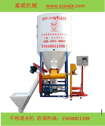 嵩威牌立式干粉 攪拌機(jī)-自動(dòng)裝袋稱重采用圓筒豎放的形式,中間穿插攪龍,軸承在圓筒上、下方,連接固定攪拌電機(jī),配有上料提升機(jī)。工作時(shí),螺旋提升物料循環(huán)拋散的原理進(jìn)行高精度混合,底部自動(dòng)進(jìn)料器強(qiáng)行送料(節(jié)省了上料機(jī)),采用自動(dòng)上料攪拌一體化的設(shè)計(jì),機(jī)內(nèi)結(jié)構(gòu)設(shè)計(jì)合理,適用性強(qiáng),物料流動(dòng)性好,無(wú)分層,無(wú)死角、無(wú)殘留,無(wú)積淀、全封閉,無(wú)粉 塵外溢,閥門(mén)控制出料,易清洗,易操作,占地面小,節(jié)省勞動(dòng)力,裝載系數(shù)大,適合多種比重不同的干粉 原料進(jìn)行高精度混合,攻破了干粉 攪拌機(jī)軸承密封不嚴(yán)密的技術(shù)難關(guān)-嵩威機(jī)械