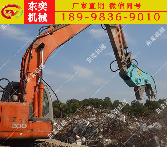 挖掘機(jī)液壓鉗又名挖掘機(jī)破碎鉗,拆遷破碎剪。近幾年在國內(nèi)逐漸受到客戶認(rèn)可,在拆遷中粉 碎混凝土作業(yè)效率高,搭配破碎錘使用,免除了人工作業(yè)的危險性高 成本高的缺點。液壓鉗由鉗體、油缸,運動顎、固定顎四大部件組成,通過液壓系統(tǒng)對液壓油缸施加運動壓力,使液壓鉗的運動顎和固定顎實現(xiàn)張合運動,實現(xiàn)粉 碎效果。