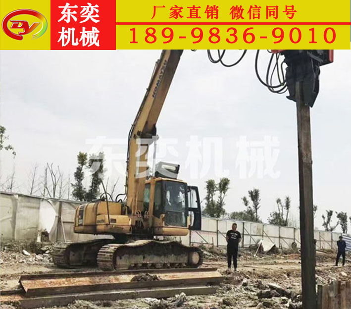 6.可與任何廠家的挖掘機(jī)匹配。不需要對(duì)挖掘機(jī)進(jìn)行改造,不損害挖掘機(jī)自身的油路,裝拆打拔樁機(jī)只需要半個(gè)小時(shí)。