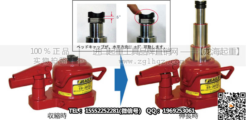 鷹牌迷你型千斤頂,采用超低床型設(shè)計(jì),特殊設(shè)計(jì)球面頭帽,在5度范圍內(nèi)可傾斜平穩(wěn)頂升,設(shè)有旋轉(zhuǎn)式插孔插座,可左右手操作,自由選擇各角度進(jìn)行壓桿操作,狹小空間輕松安 全頂升作業(yè)必備工具,屬于日本原裝進(jìn)口的eagle品牌,龍海起重代理銷售,部分型號現(xiàn)貨供應(yīng),保質(zhì)1年