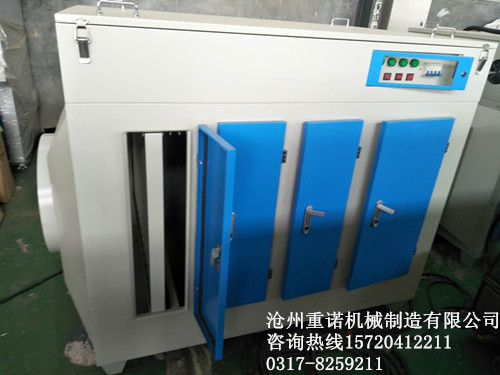 2.混合氣體中需要有足夠的含氧量,才能產(chǎn)生足夠的游離態(tài)氧和臭氧與裂解后的惡臭氣體分子基團(tuán)結(jié)合產(chǎn)生無污染的低分子化合物。因此不適應(yīng)處理濃度過高的廢氣,如處理高濃度廢氣時,應(yīng)相應(yīng)的補(bǔ)充一部分新鮮風(fēng)以增加含氧量。