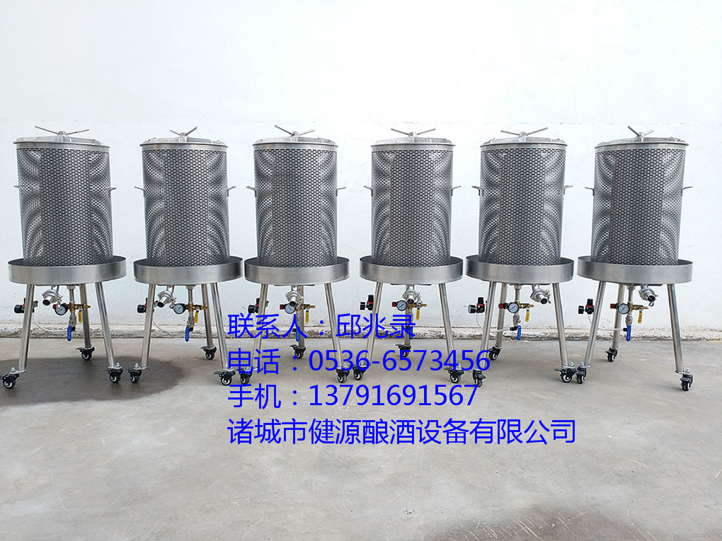一用:破碎葡萄,將葡萄粒放到桶中,輕輕(注意:輕壓可以防止葡萄中的劣質(zhì)單寧的浸出)轉(zhuǎn)動(dòng)壓榨桿葡萄被緩緩破碎,葡萄汁被擠出,完成葡萄破碎;本機(jī)還可以破碎其他水果:楊梅、杏子、蘋果、菠蘿、香蕉等水果,用于榨汁;